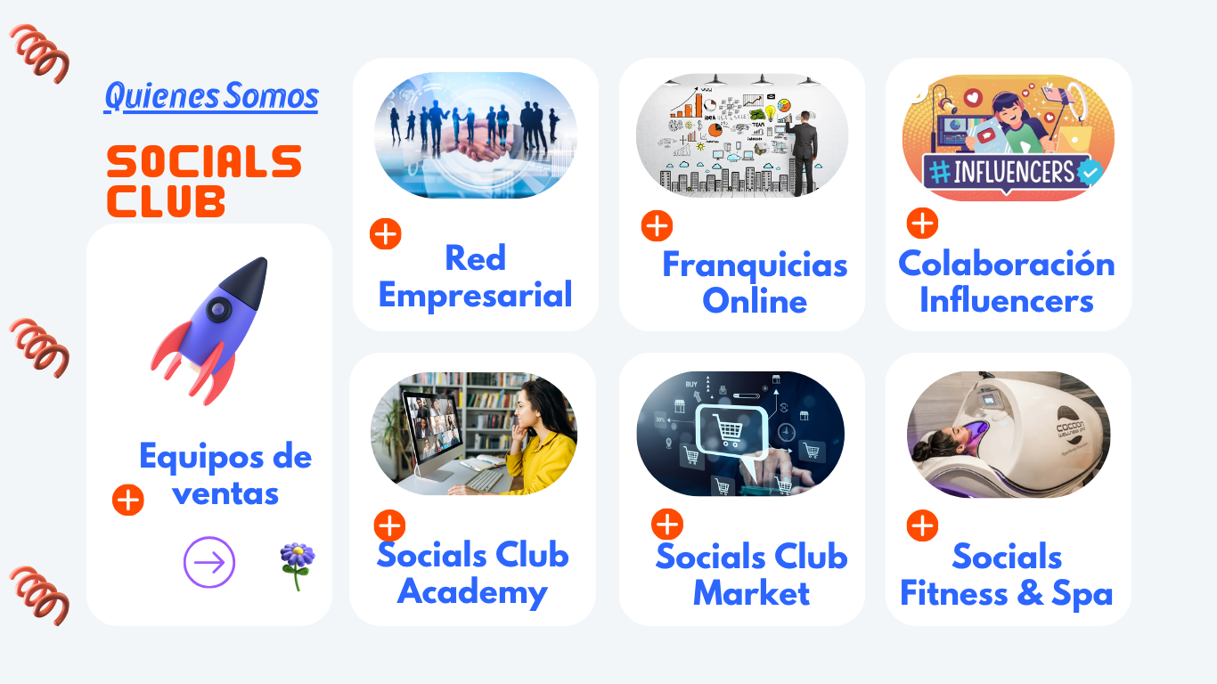 SI DESEAS PERTENECER A SOCIALS CLUB, FÓRMATE CON EL CURSO HIGH TICKETS DE LA FRANQUICIA SOCIALS FITNESS & SPA, DONDE LE DAMOS A CONOCER LAS HERRAMIENTAS DE MARKETING Y PLATAFORMAS DE DESARROLLO DE TU NEGOCIO CON SOCIALS CLUB.