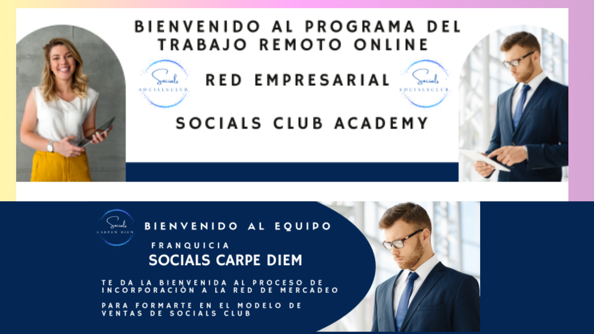 Acompáñanos en este viaje ¡ESTAMOS AQUÍ PARA AYUDARTE! 1) Modelo de Ventas: En los Equipos tenemos a Supervisores, Influencers, Promotores, Comerciales, Vendedores, Appointmet Setter, Closers y Agentes de IA. 2) Modelo de Publicidad: Realizamos Eventos y Congresos sobre Bienestar & Salud, Negocios Online para Agentes de Cambio y Oportunidad de Negocios digitales con IA. 3) Modelo de Comisiones: Ganarás comisión por los tickets a los eventos y por lo que su referido compre en el mismo evento y a futuro por los Embudos de ventas con IA. 4) Modelo de Referidos: Usted ingresa a Socials Club como Socio Partner, donde podrá visualizar en un panel de control las Campañas Publicitarias, además, sus facturas de ventas y el viaje de compra de sus referidos. 5) Modelo de Lead Manet: lngresa Referidos a nuestro Embudo de publicidad de Agentes de IA, invitándolo a descargar nuestro plan de bienestar: Club Retorno al paraíso, porque su referido es suyo y por todas sus compras recibirá comisiones residuales.